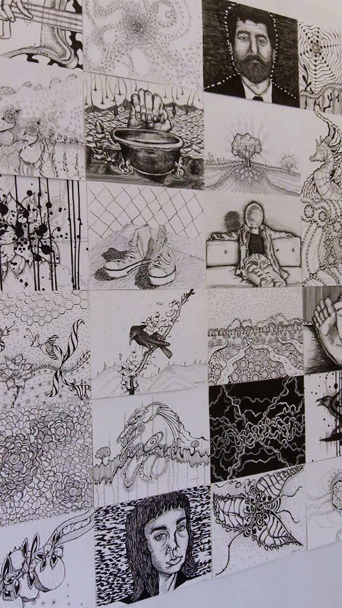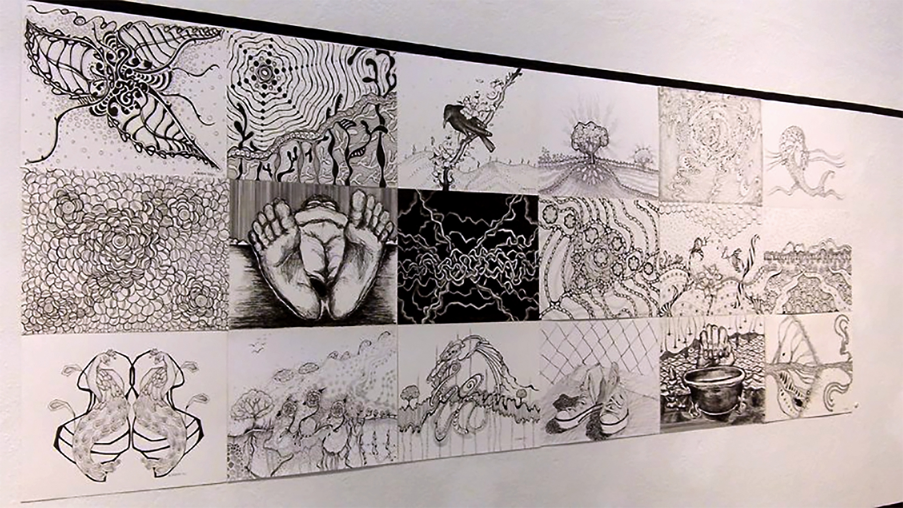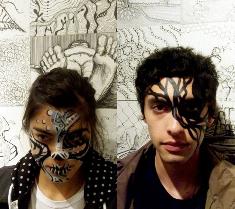 Elements from the Black and White installation. The installation included, art exhibit, black and white food, face painting and music.